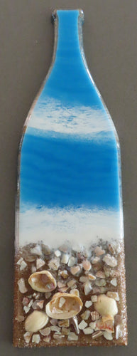 Wall Art Wine Bottle Small Ocean Waves and Seashells #98