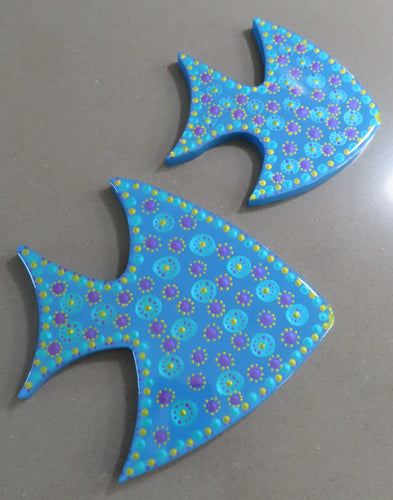Wall Art Sea Life Mandala Blue Fish Set of Two #70