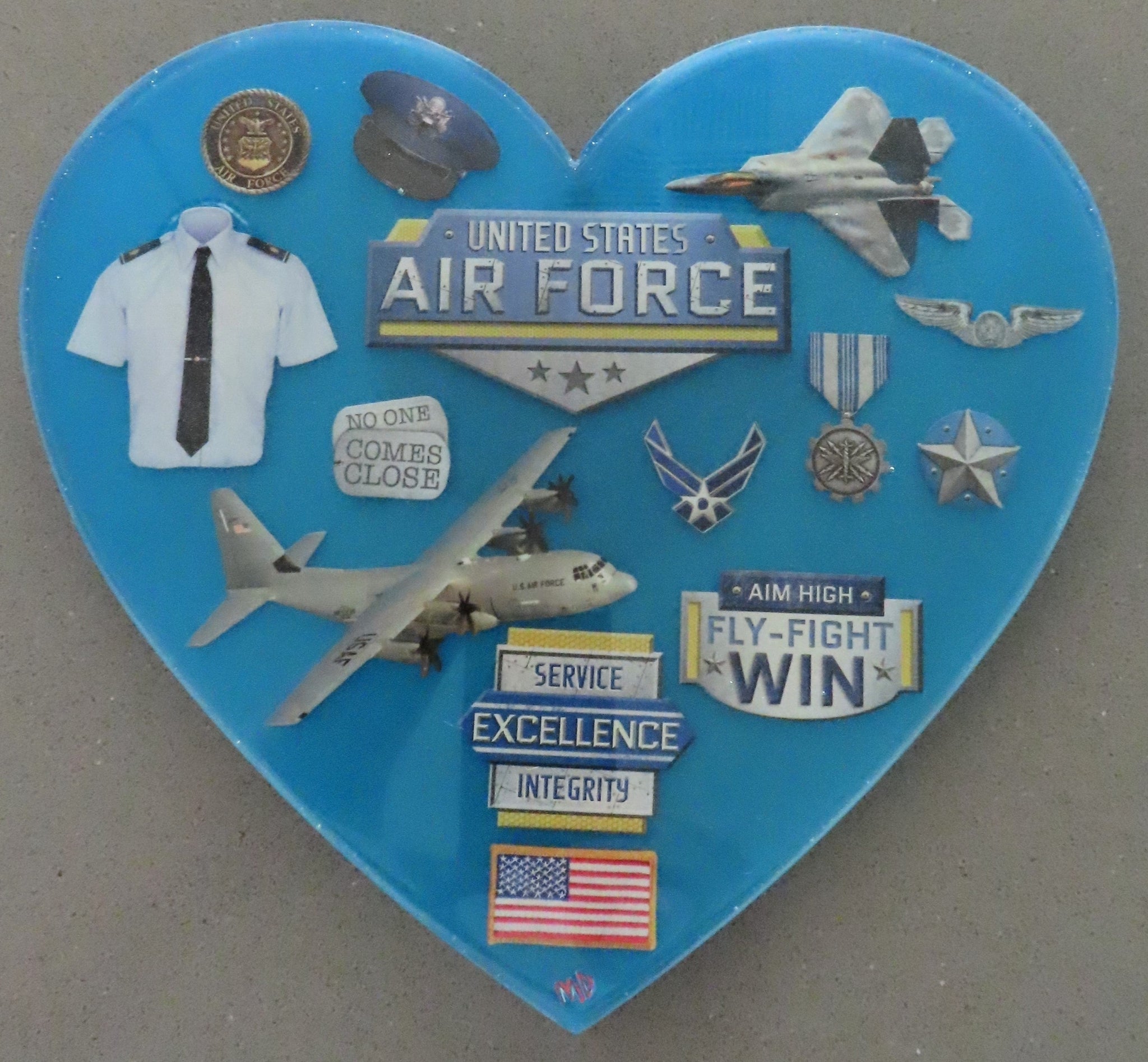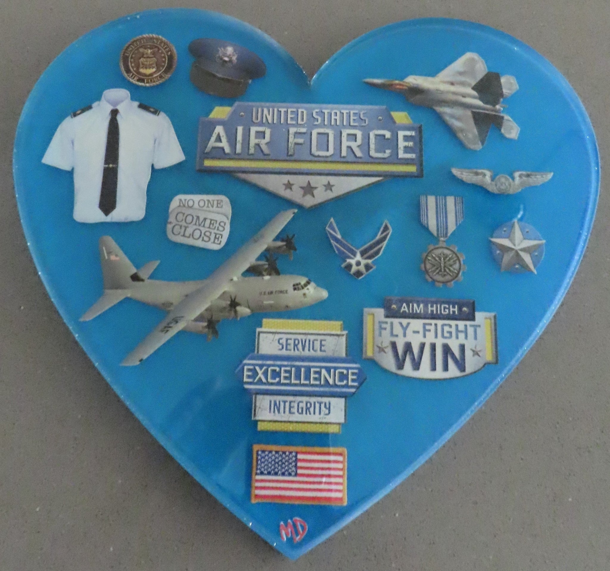 Heart Air Force Resin is multi layers of resin. Size: 8.5" x 9.25"