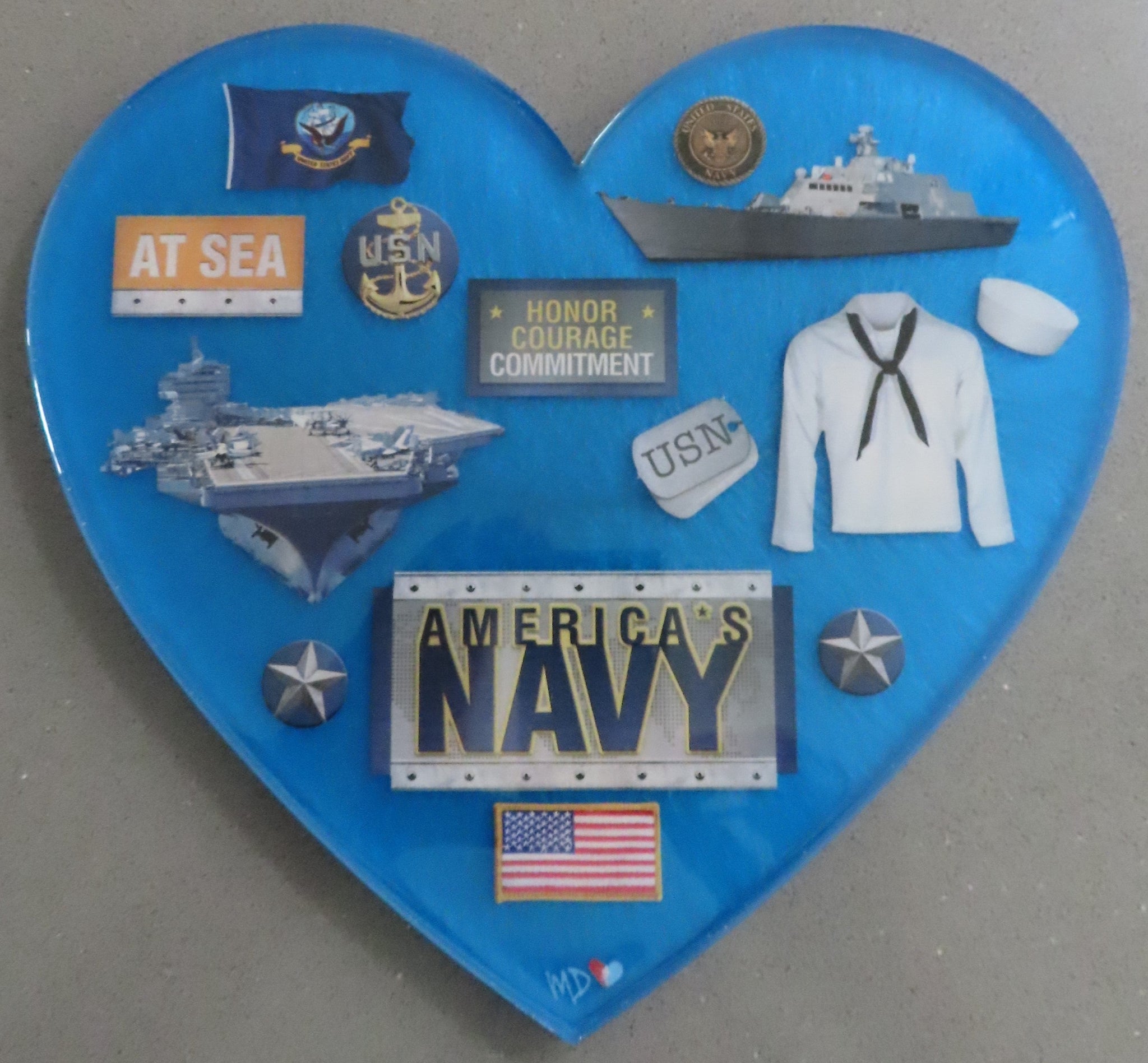 Heart Navy Resin is multi layers of resin. Size: 8.5" x 9.25"