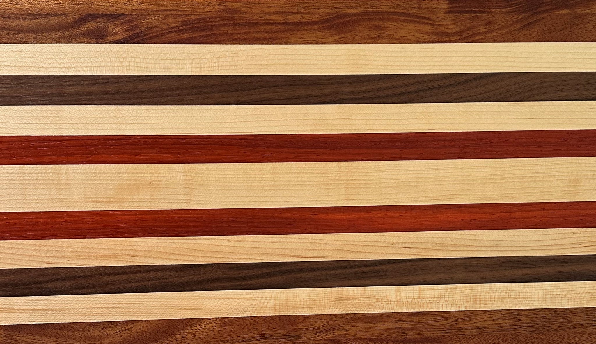 All handmade mixed woods stripes cutting board. Walnut, Mahogany, Maple, Padauk